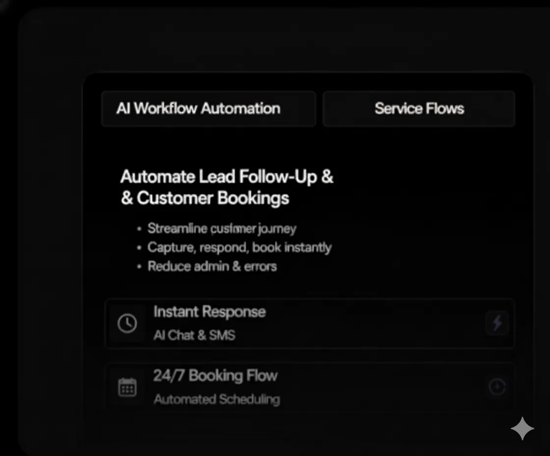 AI automation captures leads instantly, books customers 24/7, and handles follow-ups automatically - freeing your staff from repetitive admin so they can focus on customer care and revenue growth.