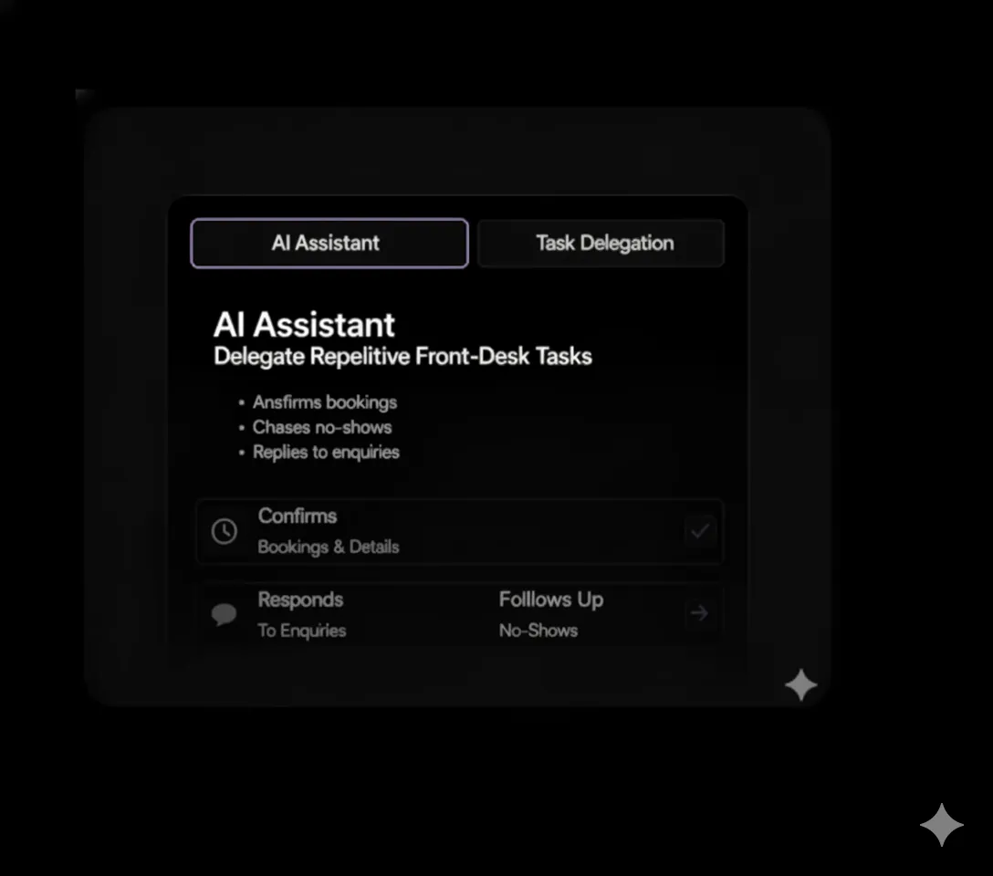 Your AI assistant handles every repetitive task you shouldn’t be doing - like confirming bookings, chasing no-shows, and replying to time-wasting enquiries.