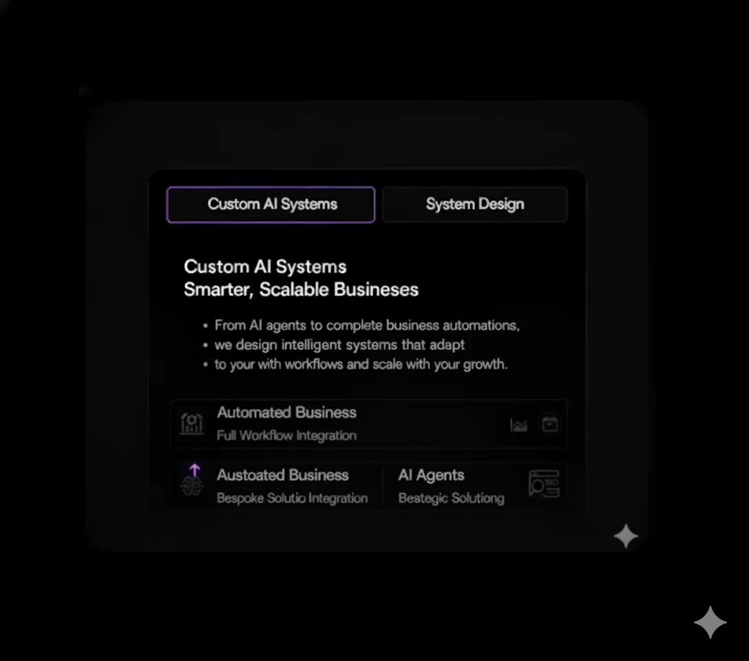 From AI agents to complete business automations, we design intelligent systems that adapt to your workflows and scale with your growth.